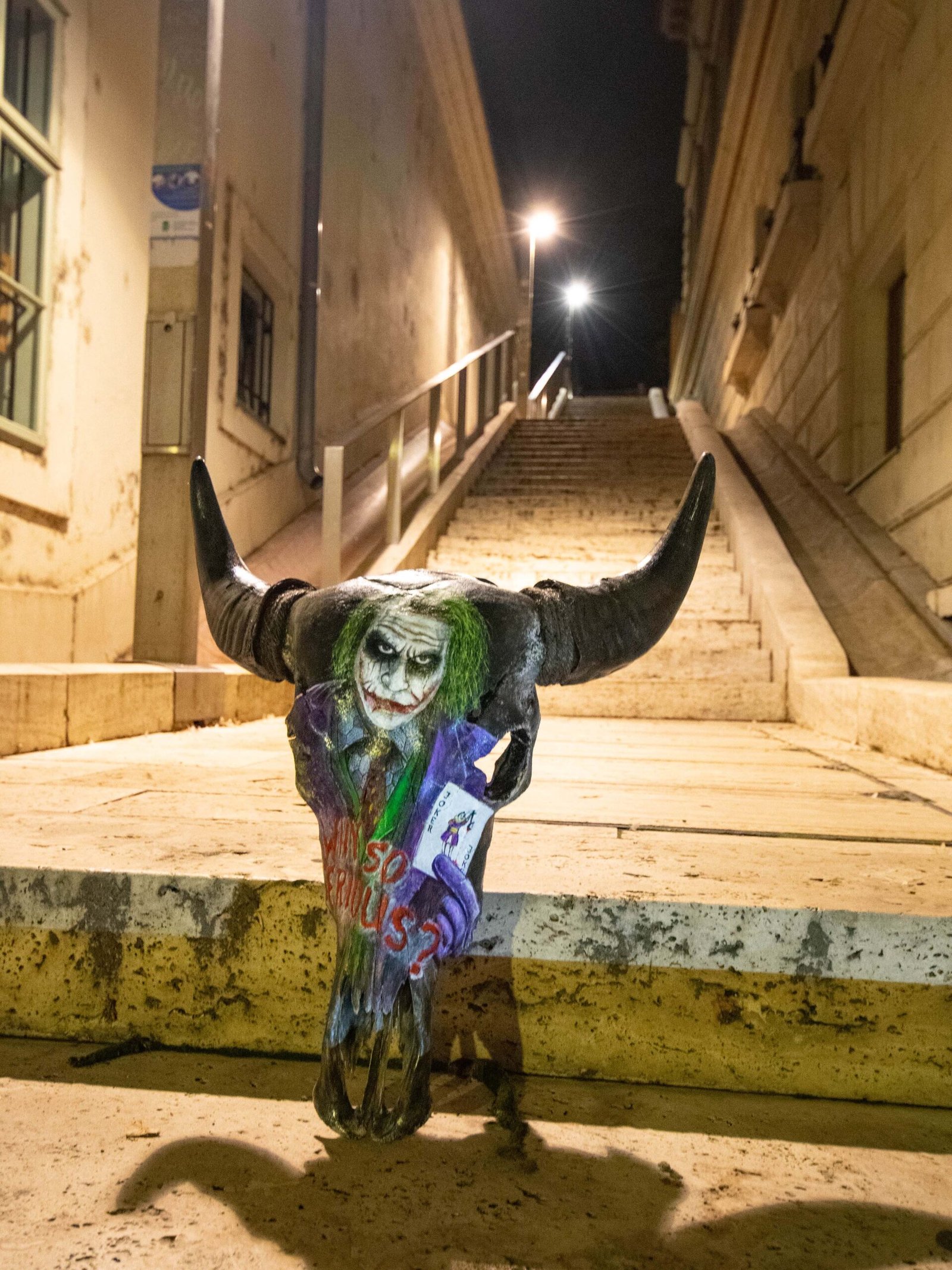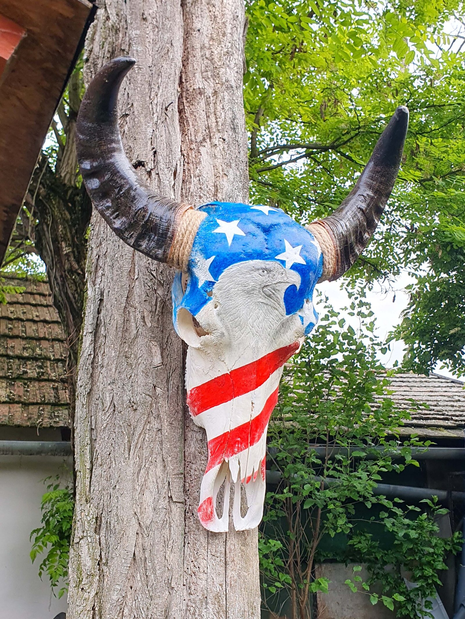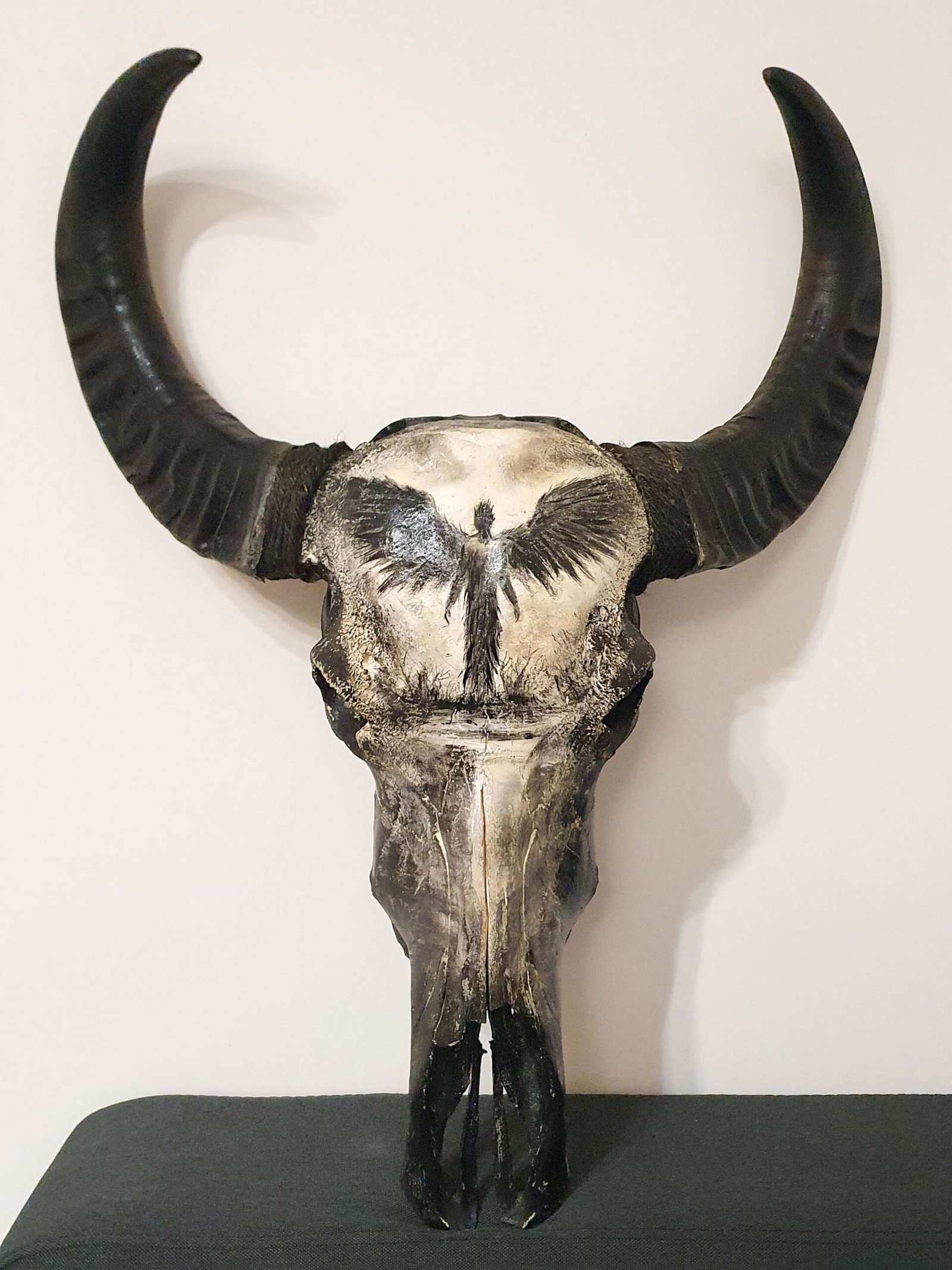 THE ICONIC FACE HAND PAINTED ON BUFFALO BULL SKULL